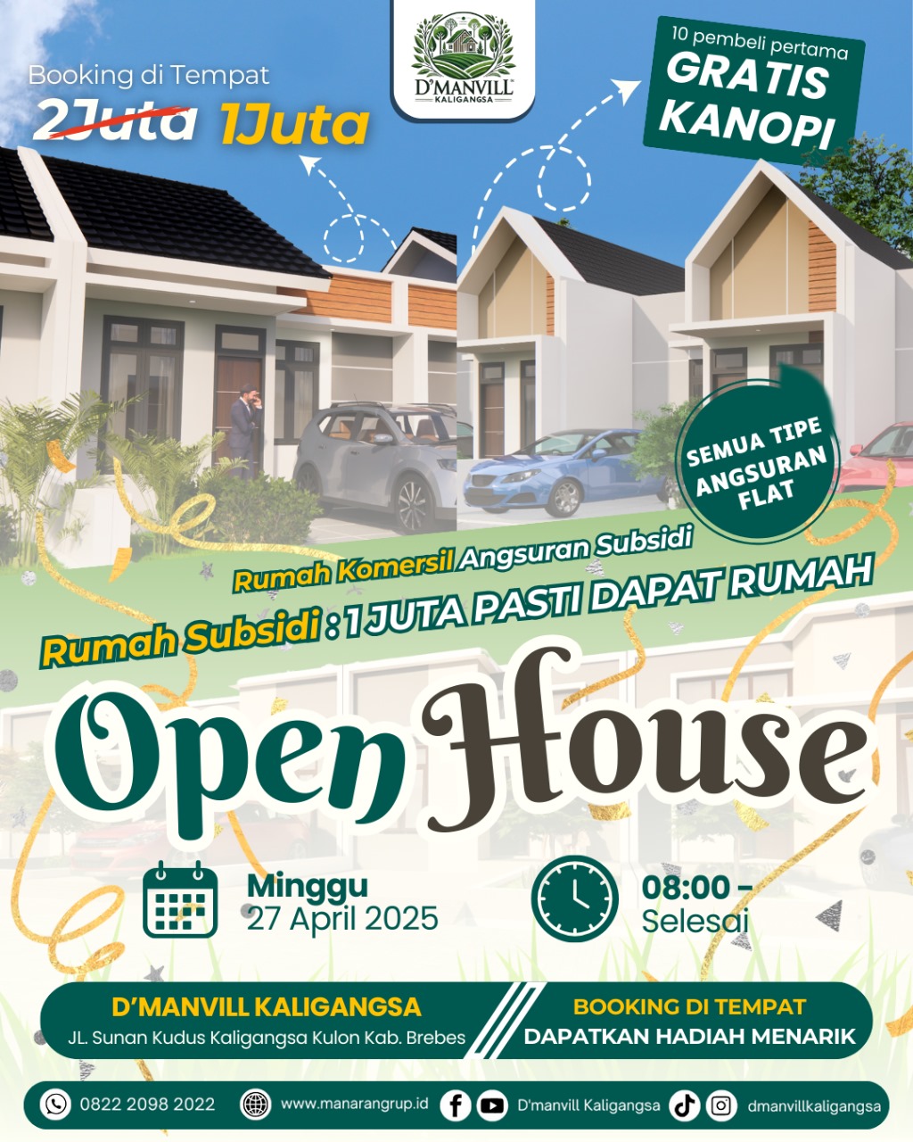 Open House D’Manvill Kaligangsa: Kesempatan Emas Miliki Rumah dengan Booking Hanya 1 Juta!