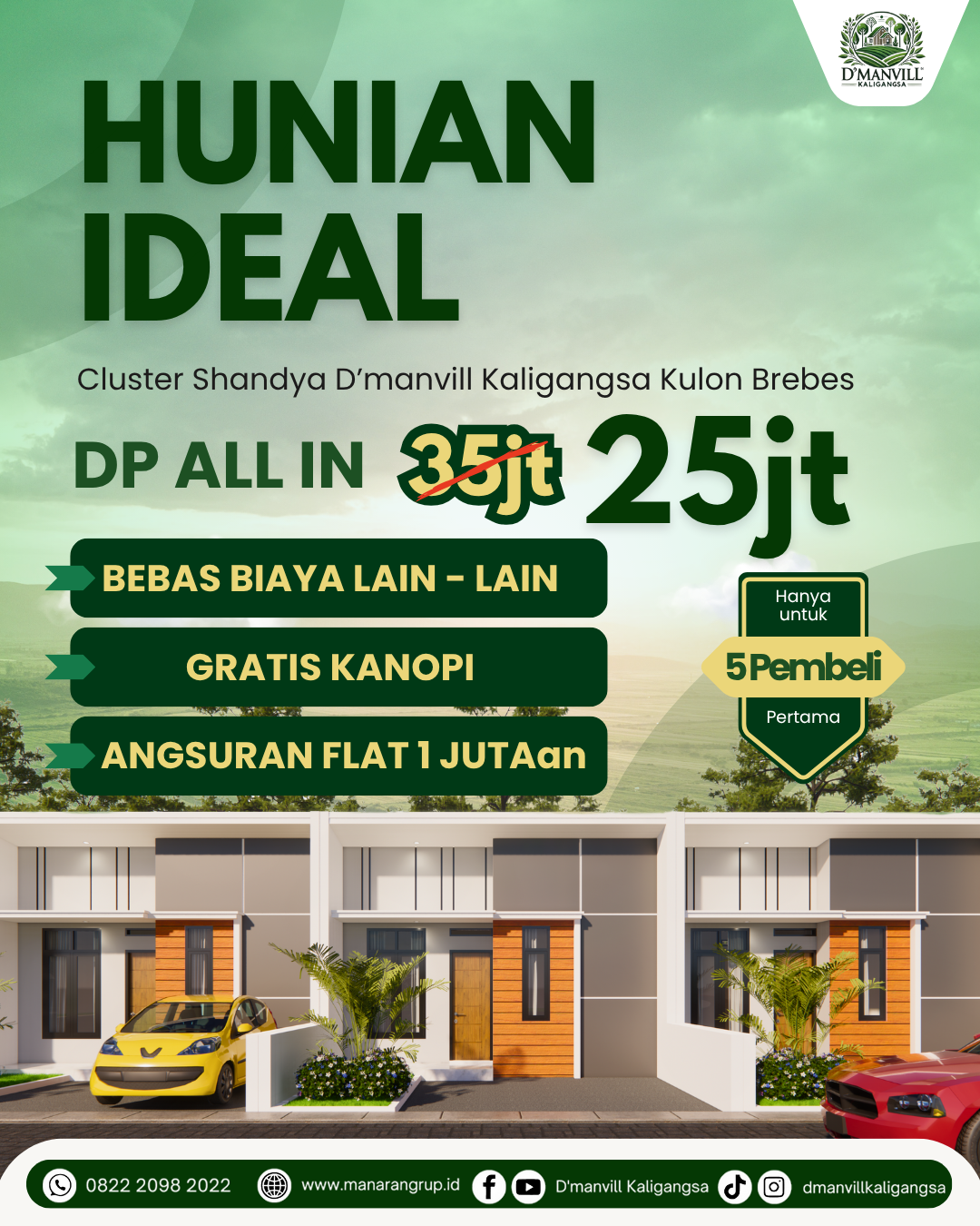 Sambut Juni dengan Promo Spektakuler dari D’Manvill Kaligangsa: DP All In 30 Juta, Bebas Biaya Lain, Bonus Kanopi & Angsuran Tetap 1 Jutaan!