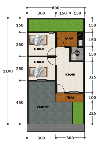 Cluster Azzura Tipe 32 / 66 Luas Bangunan 32 m² Luas Lahan 66 m²